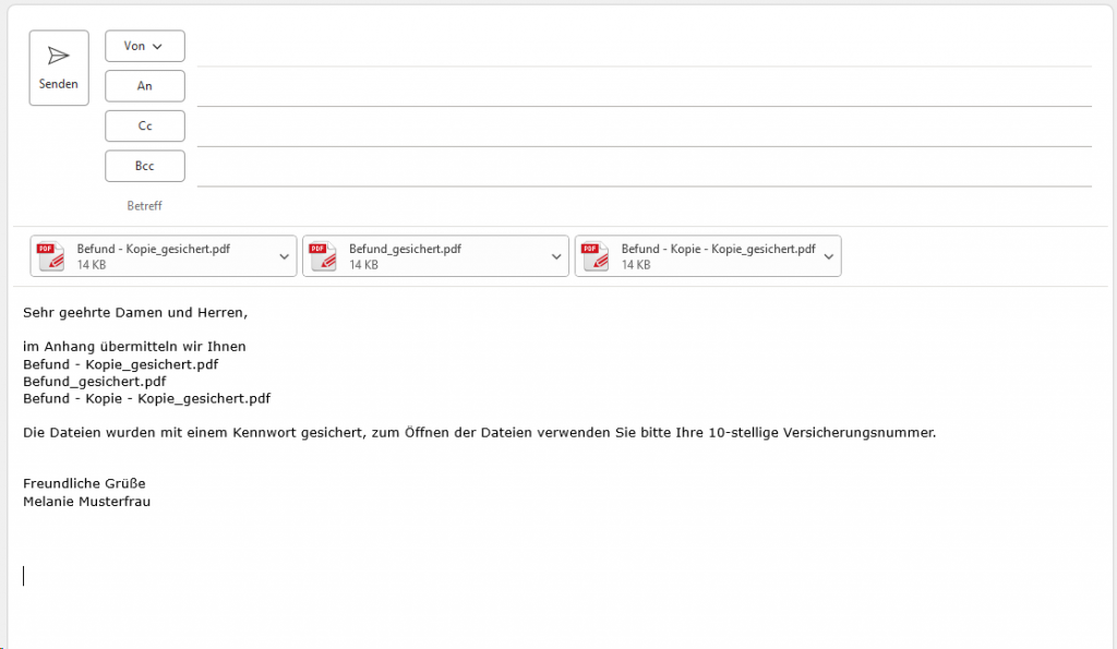 - Alle PDF-Anhänge mit bis zu 10 Seiten werden automatisch verschlüsselt.